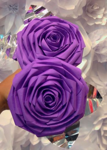 Giant rose starting at 2 feet wide comes with a 4 ft handle to hold. Looks amazing displayed ,in group photos or alone. The most beautiful biggest rose you could give to someone. Custom to any color or photo you wish. Decorate with these anywhere. Choose green, gold or silver leaves. Set comes with matching box and heart.