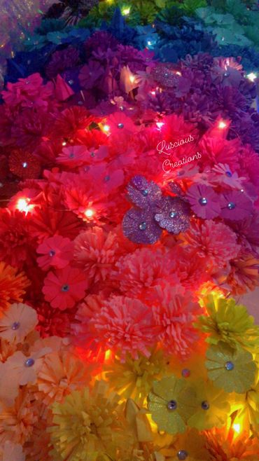 These tissue paper wall flowers are beautiful for your home or any event. Choose any color you wish. Feel free to bring me the tissue paper for a discount.