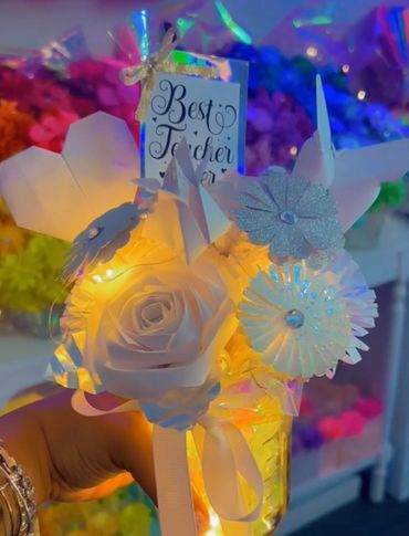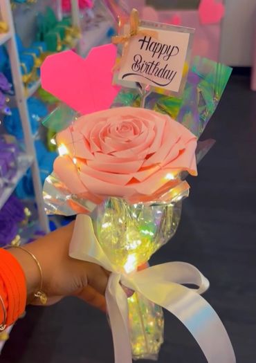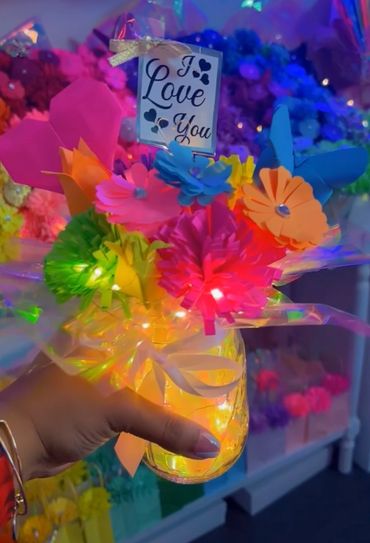 Come create your very own bouquet right in the store. Add money roses to your creation. Mix and match the pieces you like. You can also add a free heart or butterfly inside. $10 a flower each. Great for any occasion. Add lights for $5. Baby Roses do not come with this but you add those for additional fee.